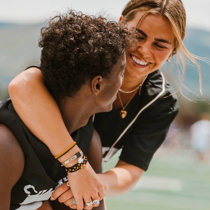 This Game Day set is made to show your school spirit with style and pride. These 5 hair tie bracelets feature bold team colors of black and gold. They are perfect for cheering from the sidelines or celebrating a win. With a “Let’s Go” charm and a natural stone bead accent, this set is a fun way to support your team and wear your pride on your wrist while ready to pull your hair up when the games gets intense. Medium is the size of a normal hair tie band. It fits wrists between 5-6.4" around