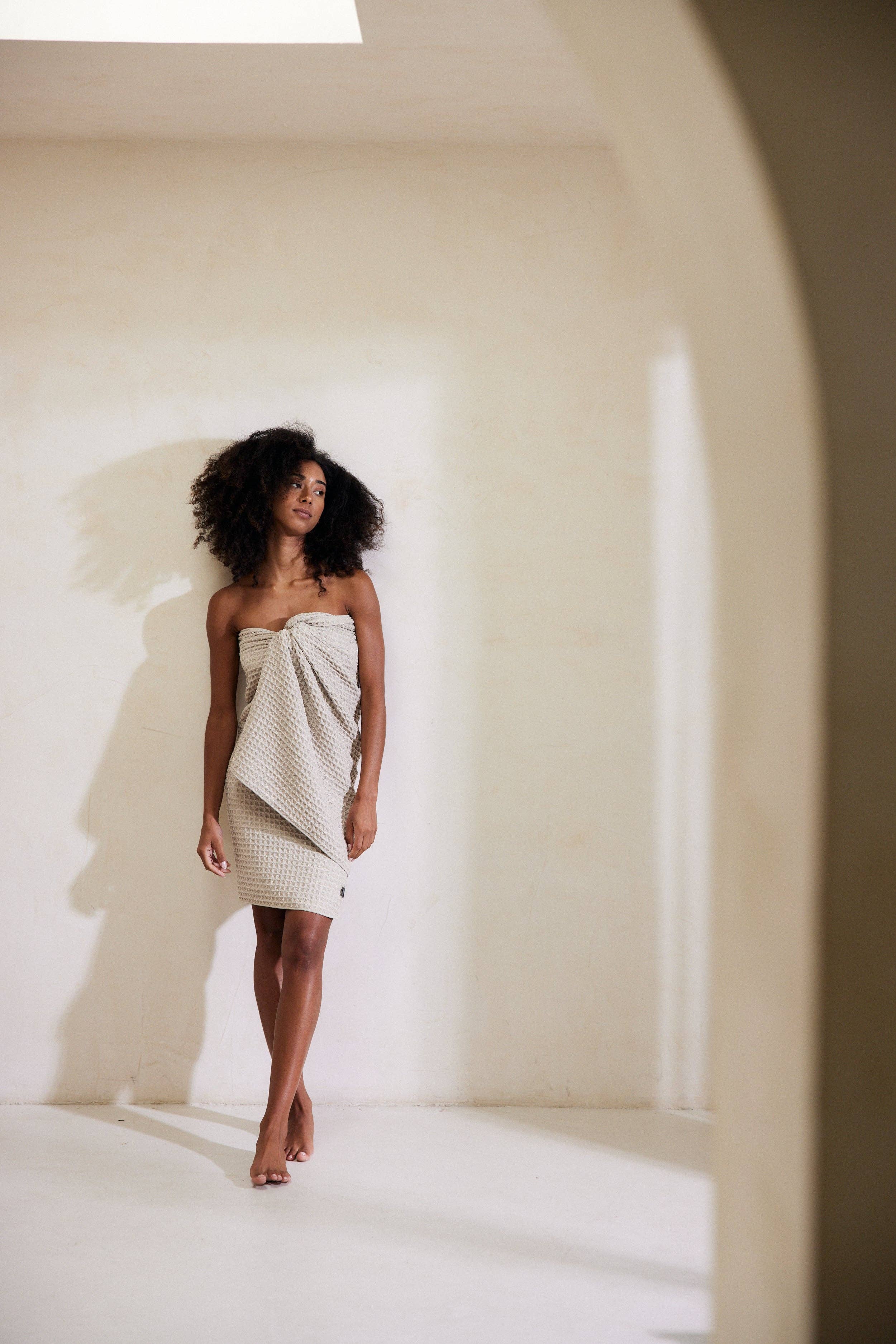 Geometry Waffle bath towels are generously sized and ultra-absorbent, so you can wrap yourself in comfort day after day. ♺ Made from post-consumer recycled materials I 31” x 57” I 390g I 85% recycled polyester / 15% polyamide I Solid Color I 1.2 cm x 1.2 cm waffle squares