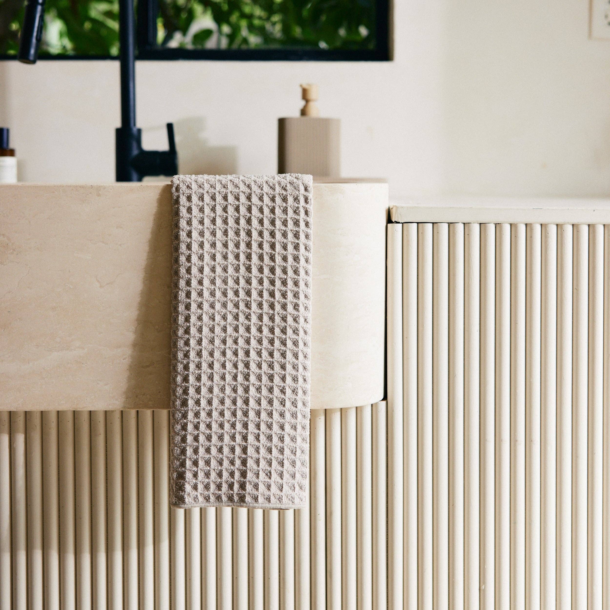 Geometry Waffle bath towels are generously sized and ultra-absorbent, so you can wrap yourself in comfort day after day.