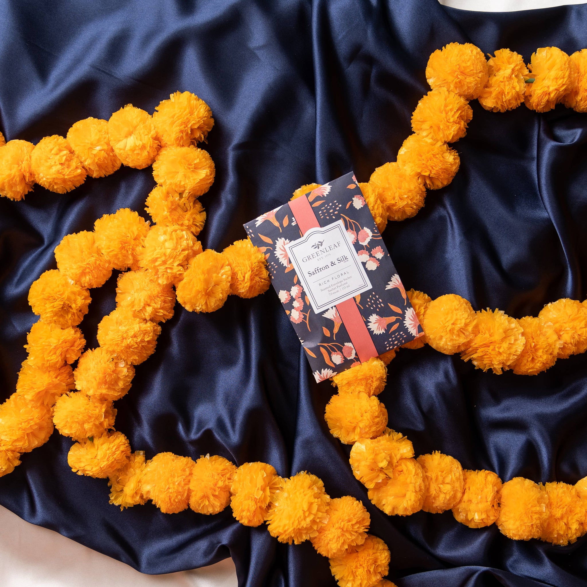 Fragrance Description: Indulge in the luxurious escape of Saffron & Silk, a sophisticated blend of mango, pink peppercorn, gardenia and patchouli.