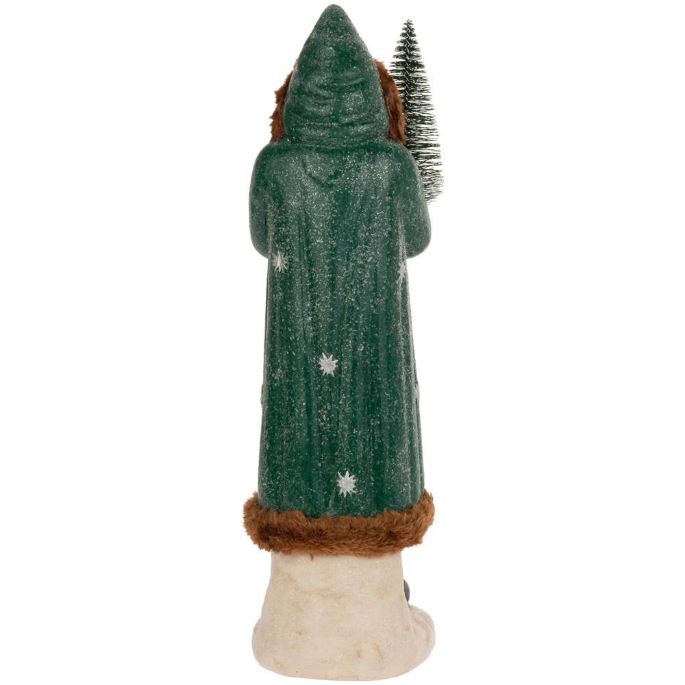 Description: 14" Tall Dark Green Hooded Saint Nick Christmas Décor, Misc info: 4 1/4 Dia x 14 H, Country of Origin: China, Materials: RESIN & PLASTIC, SKU: HFN24236, Boston International