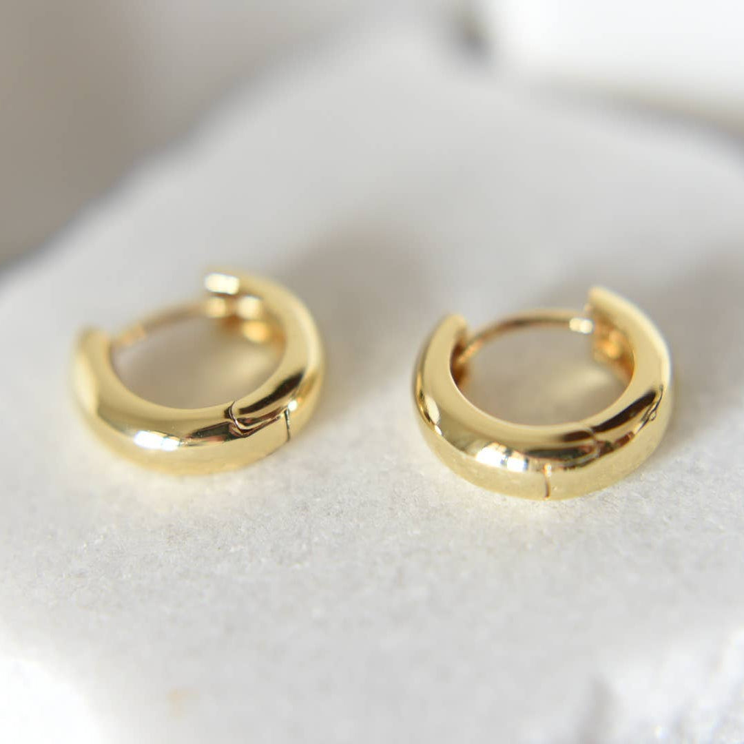 the Saranne chunky gold hoop earrings -14k gold plated hoops -clasp closure -18mm diameter -hypoallergenic -nickel & lead free -light weight