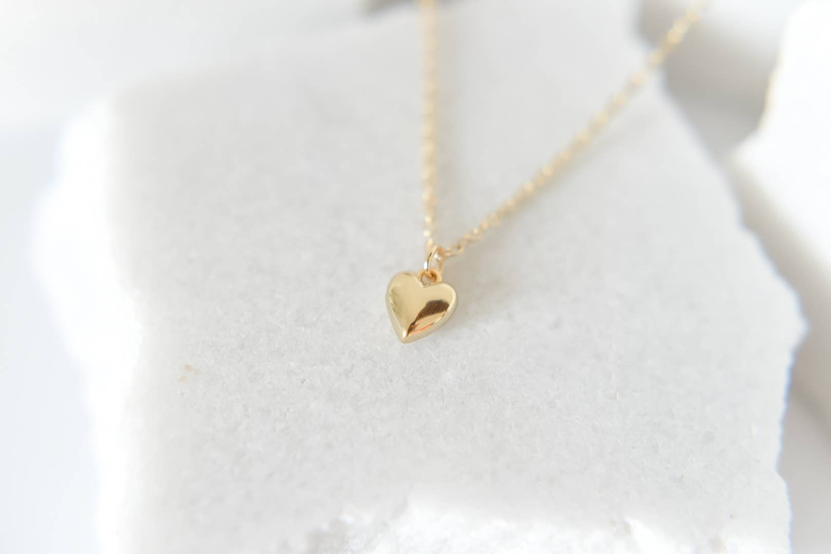 dainty necklace with gold bubble heart charm *dainty gold necklace *18k gold plated *tarnish resistant *lobster claw clasp *18in *dainty 1.5 mm chain *gold bubble heart charm (18k gold plated