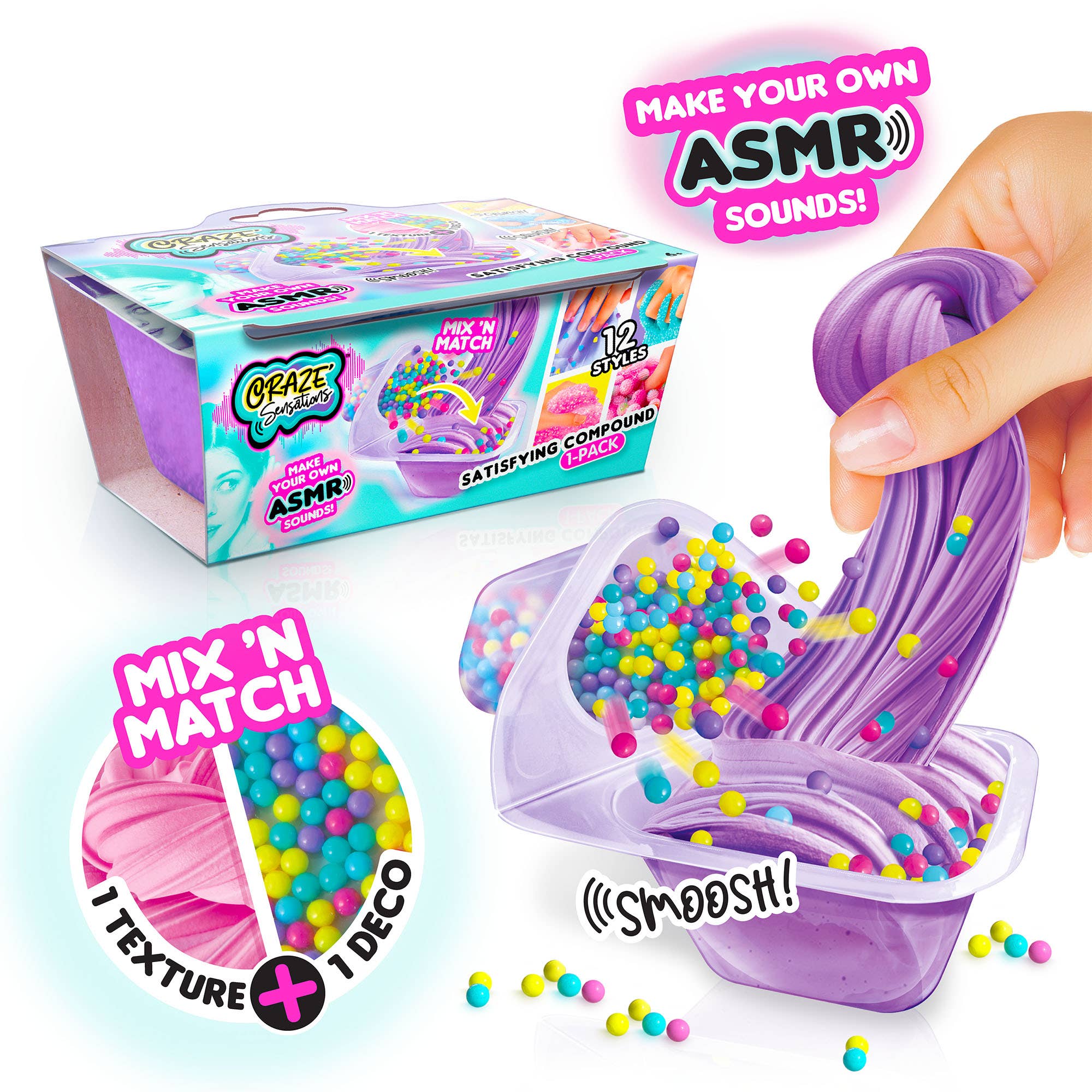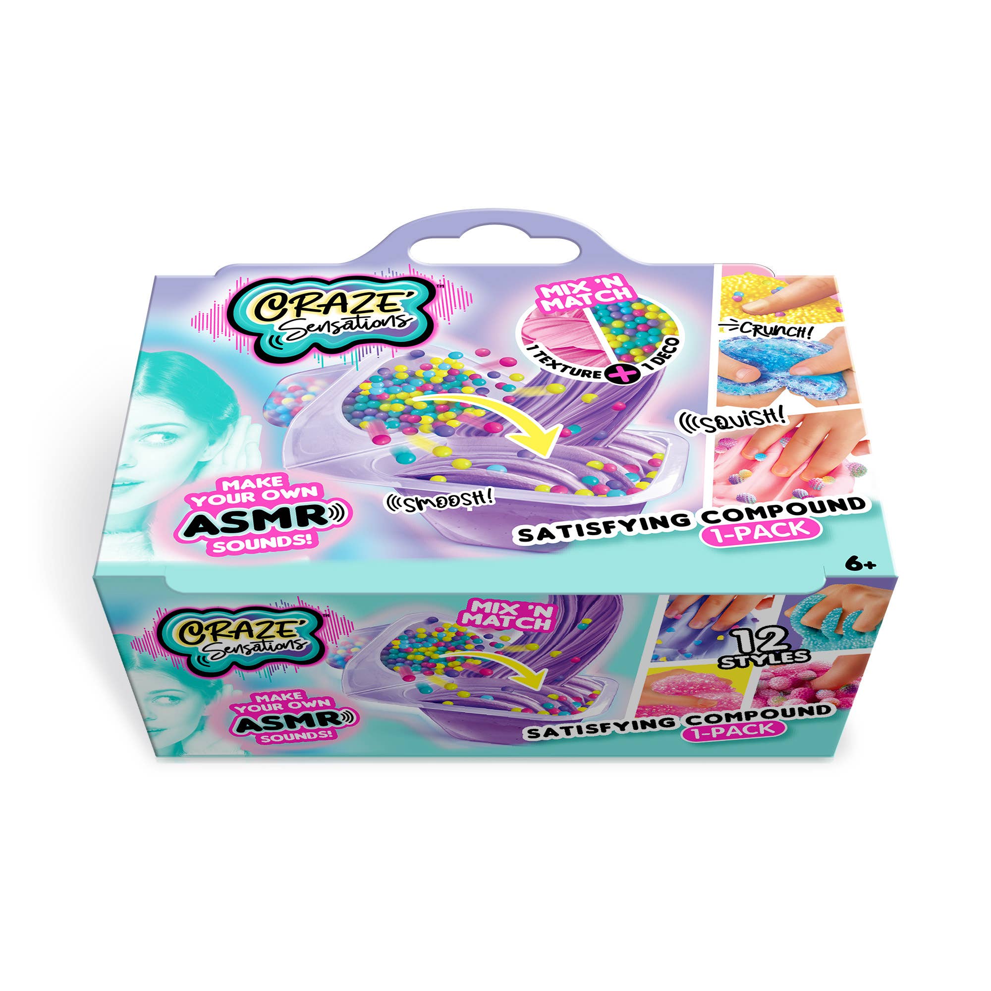 Mix, squish, and satisfy your senses! Craze Sensations ASMR Compound Surprise delivers the ultimate tactile experience in a compact mystery pod. Each 2.5-inch container includes one trendy compound—like foam, sand, or slime—plus a fun mix-in surprise that adds texture and flair. There are 12 unique combos to collect, and each one is a satisfying sensory adventure! Key Features: • TEXTURED SENSORY PLAY: Each pod includes one compound and one deco mix-in • SATISFYING ASMR FUN: Squish, crunch, stretch, and swirl for max satisfaction