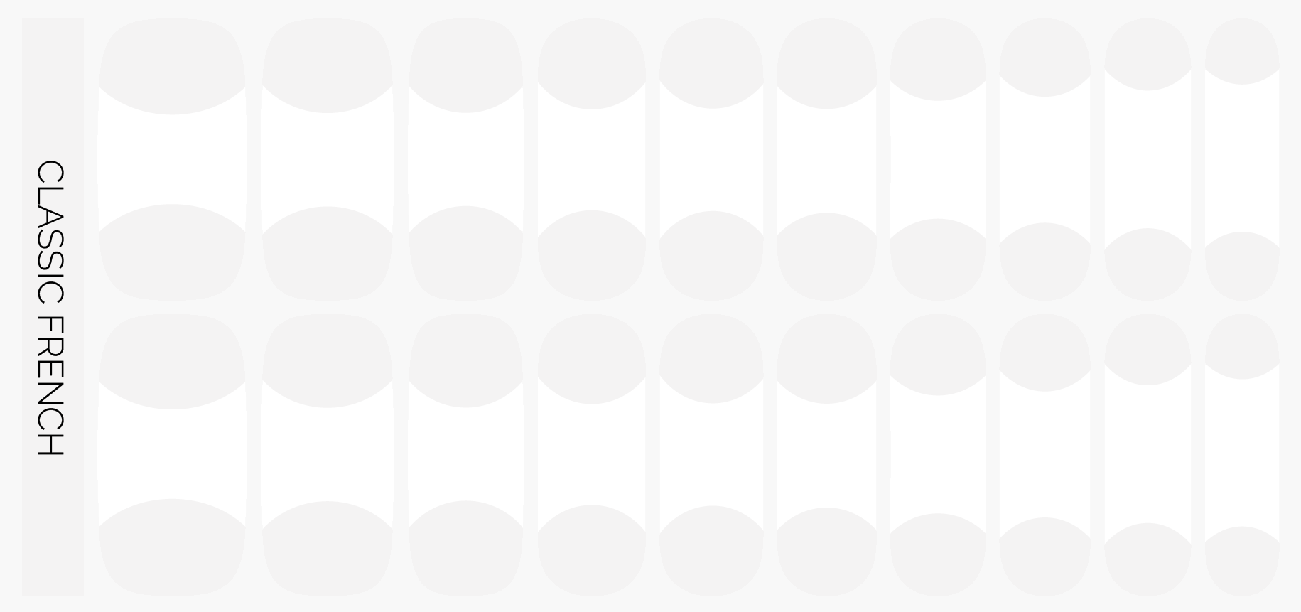 Our Classic French Nail Wrap Set features a traditional white French Tip design. This classic look pairs perfectly with every outfit, adding a touch of class.