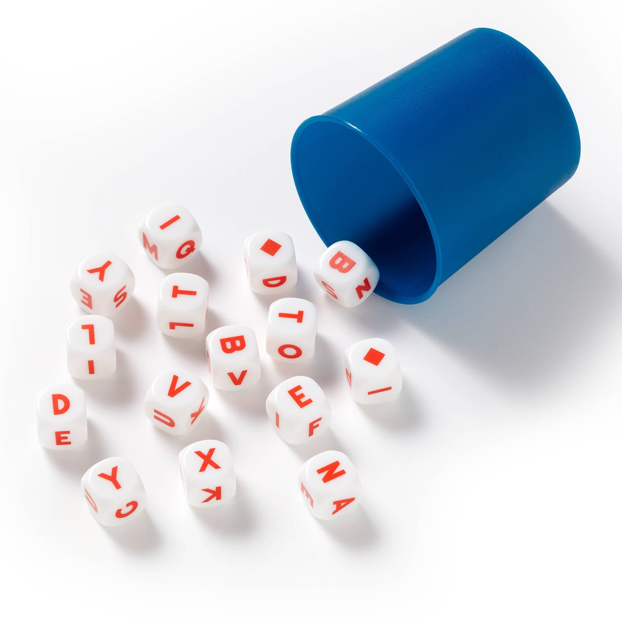 HOW TO PLAY - You can only use the letters that you roll with the 15 included dice–no matter what. So good luck with EFGIIIMDDDXVRJZ. The game includes a dice cup, 15 six-sided dice, 1 minute sand timer, score pad, and an instruction sheet!