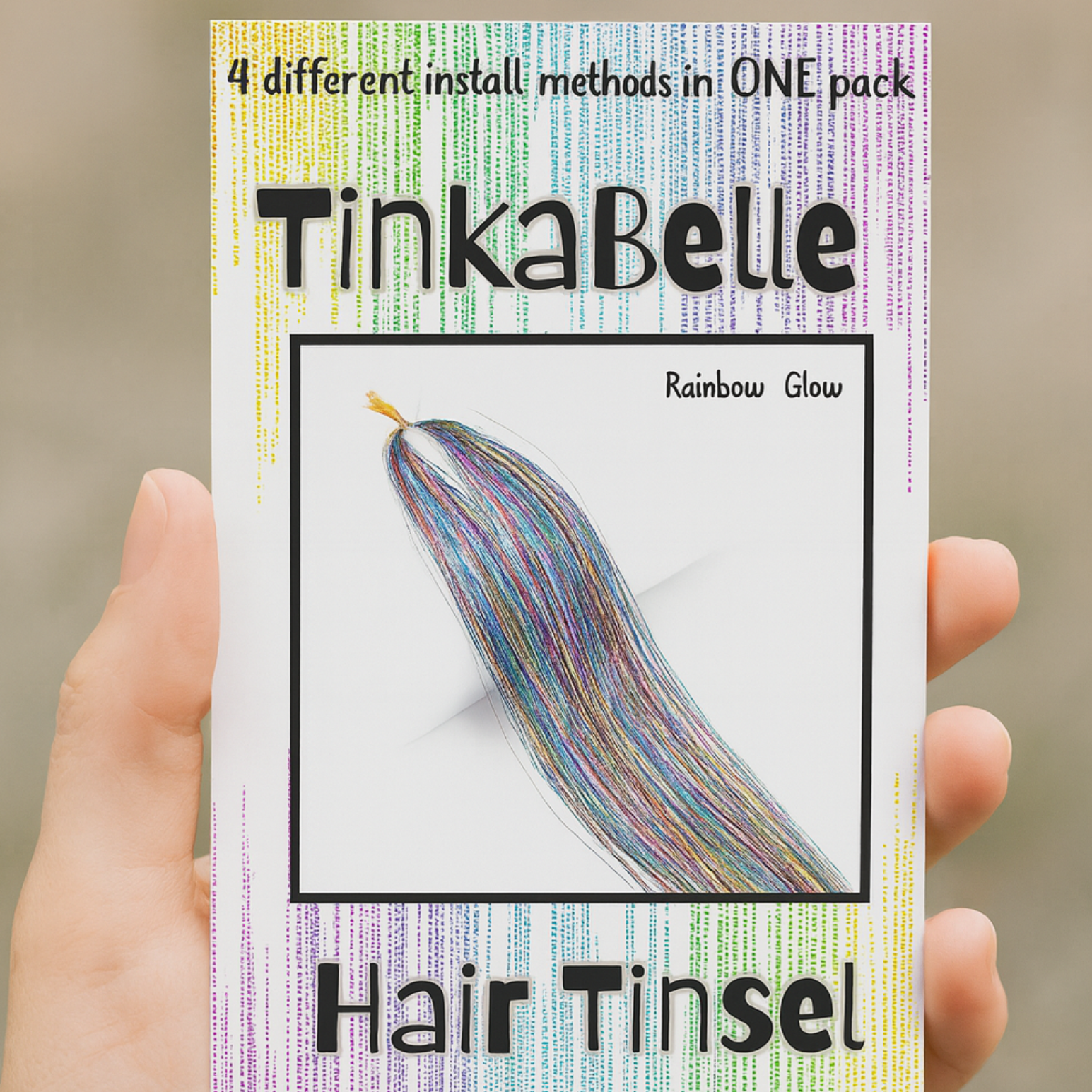 Add beautiful sparkle to every strand with Tinkabelle Hair Tinsel Kits – a top seller for kids’ boutiques, salons, and party shops! Each kit features premium-quality fairy hair that’s safe for heat styling and stays in for days (or even weeks!) with proper care.